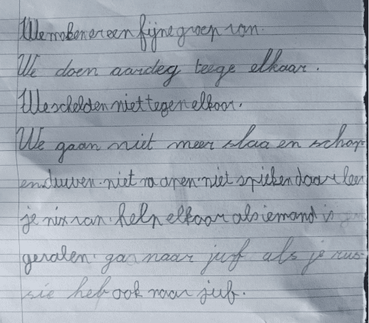 We zijn daarnaast ook druk bezig geweest met ons gedrag in de klas. Hoe zorgen we samen voor een fijne groep? De kinderen hebben daar zelf afspraken en consequenties voor bedacht.