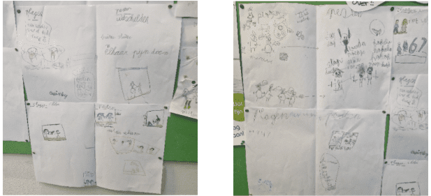 Met thema 5 hebben we het in groep 4 gehad over het verschil tussen pesten, plagen en ruzie. Ook hebben we het gehad over dat er verschillende soorten van pesten zijn. De kinderen zijn onder andere in groepjes bezig geweest met het maken van een tekening van situaties waarbij er wordt geplaagd of gepest. Deze tekeningen zijn ook in de groep besproken.